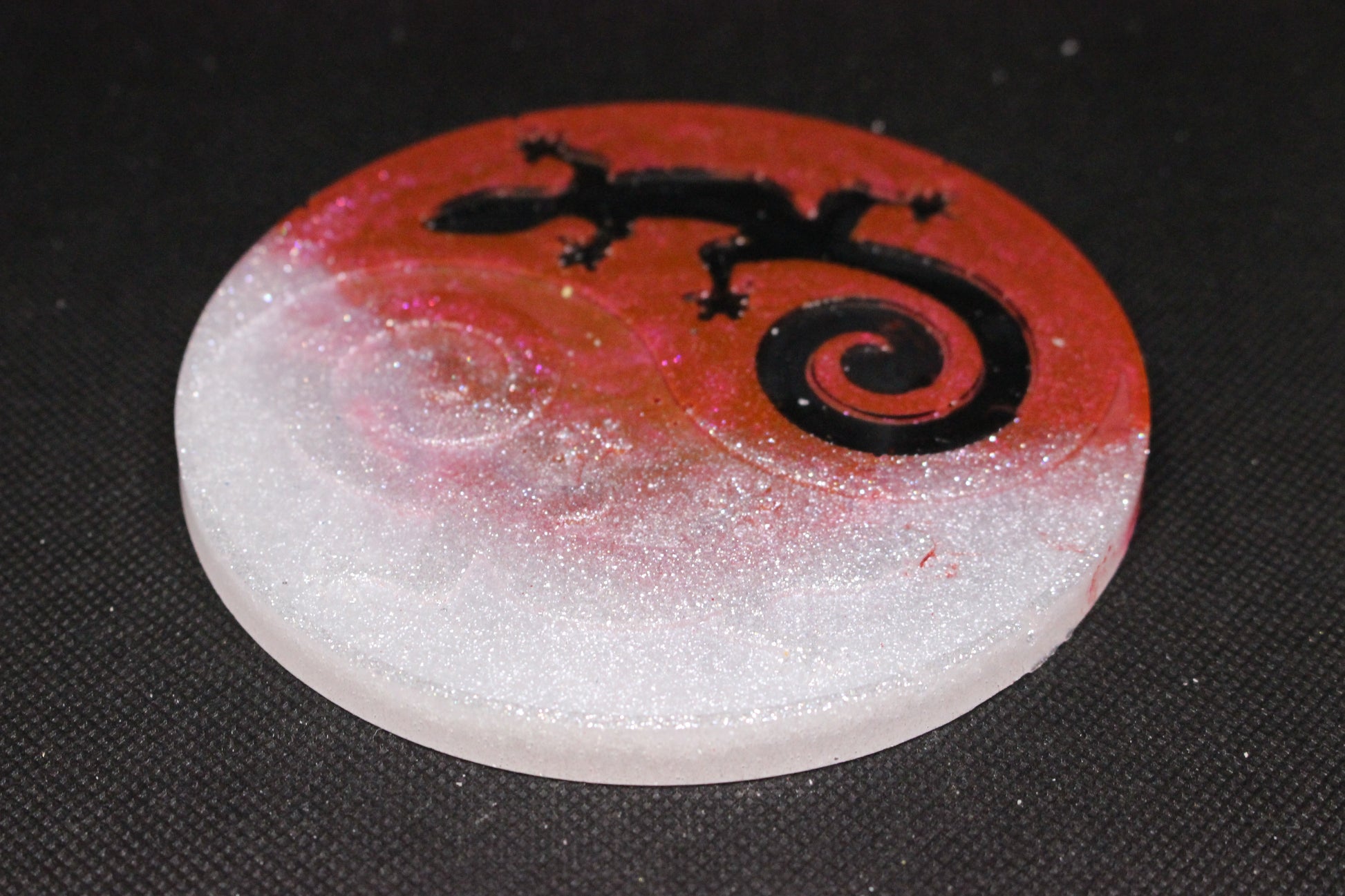 Handmade Resin Lizard Coaster with Ying Yang Design
