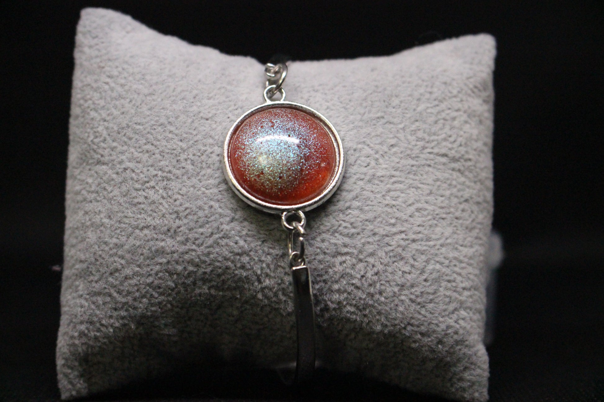 Featuring a captivating 1/2" round resin stone that sparkles in the light, this bracelet stands out as a true statement piece. Here are some key features that make it a must-have in your jewelry collection: